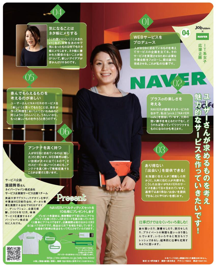 さて、11月の1ヶ月間、毎週掲載されていた、仕事探しのフリーペーパー『ジョブアイデム(Job aidem)』さんとの共同企画「Job aidem×NAVER IT系女子応援企画」の最終回、第5弾掲載号が本日発行されました。