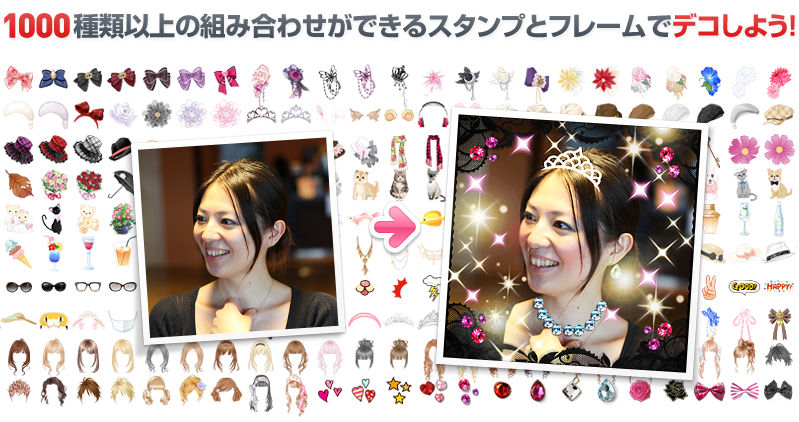 約330種類のスタンプや、約80種類のフレームを使って、オリジナルの写真アレンジが楽しめます。 ※iPhone/Androidアプリ版、PC版のみ対応