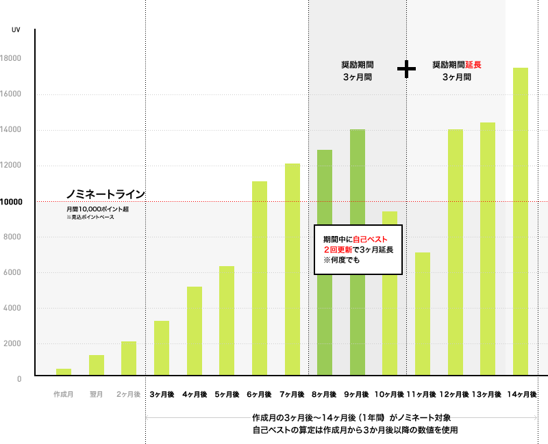 ※奨励期間の延長の判断に使用するポイントは、自己ベストの数値、各月の数値ともに「見込みポイント」で実施します